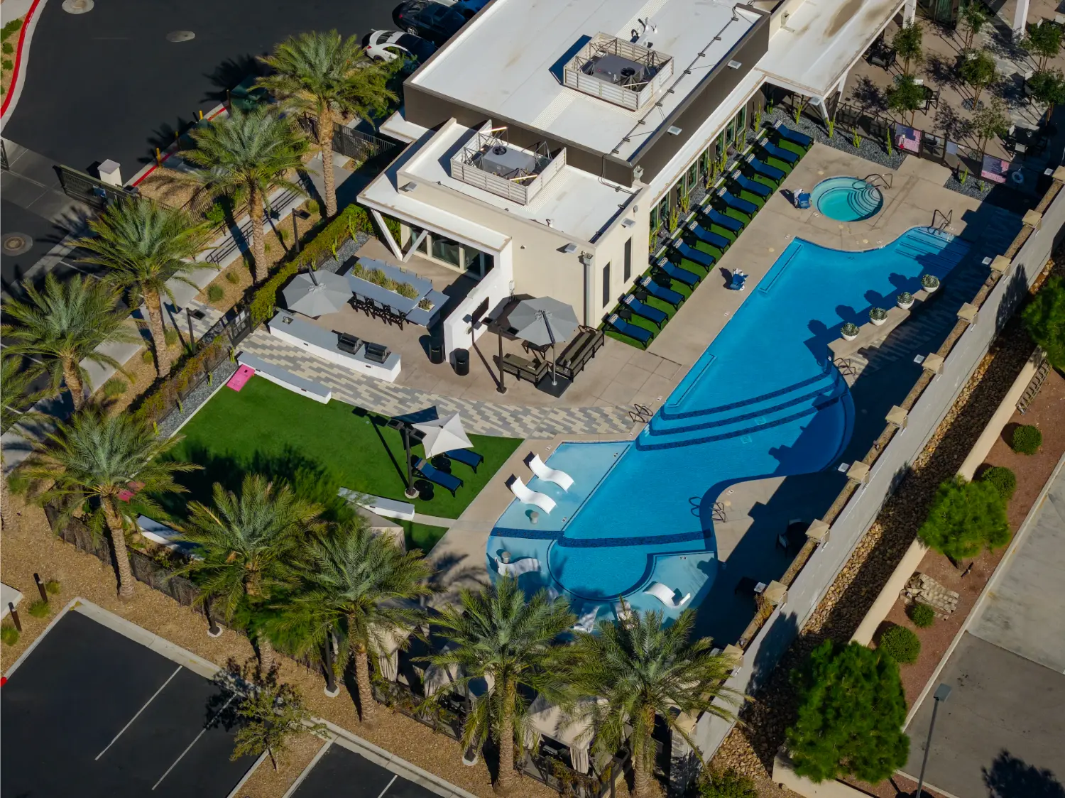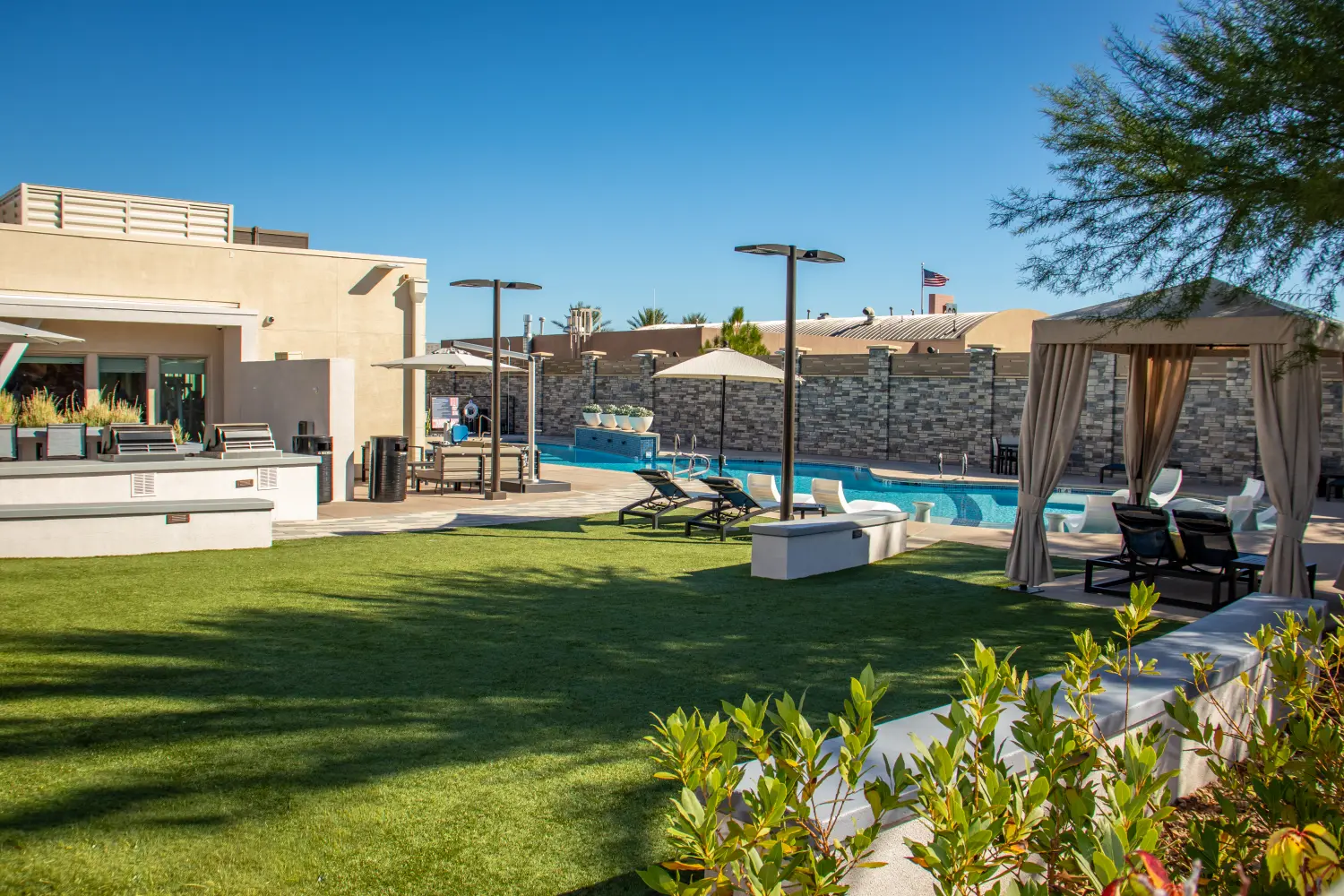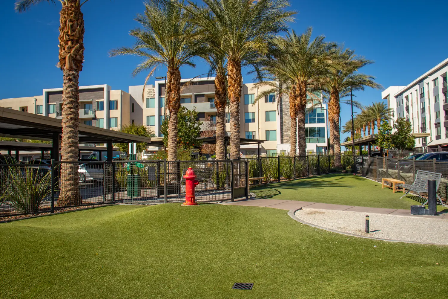 Tanager & Echo Luxury Apartments, Summerlin features two professionally fenced dog parks and a comprehensive turf conversion recently completed by our team. These enhancements were designed to improve both the sustainability and modern appeal of the property.